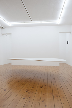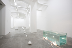 早川:なるほど。もちろん囚われるということはあると思うんですよ。目に見える空間だけではなくやっぱりものを作ったら重力には囚われているしね。僕が作っている時点でいろんな現象に僕は囚われてしまっているから、それがなにかの可能性を広げているのか広げていないのかはやっぱりよく分からない。美術という仕組みとかね。それをどう捉えるかだね。むしろ、囚われることに積極的にアプローチをかけたりしていく事が多いね。ネガティブには捉えていないですね。そういう構造があるなら利用しようとするし、梁があるなら梁も使えるだろうし、いろんなもの全てを等価に扱おうとしている。あるものはしょうがないじゃない。ここだからこそ出来ることがあると思うから、「ものを作るだけが僕の仕事じゃない」と思うところにつながるのかもしれない。ここでインタヴューをうけることも制作に入ってくる。せっかくあることを見ないことって勿体ないじゃない。だから空間をネガティブに捉えたことはないですね。むしろ好きですね、そういう制約みたいなの。制約があるからこそ作品がいろいろな方向に向いていくと思っているんですよね。